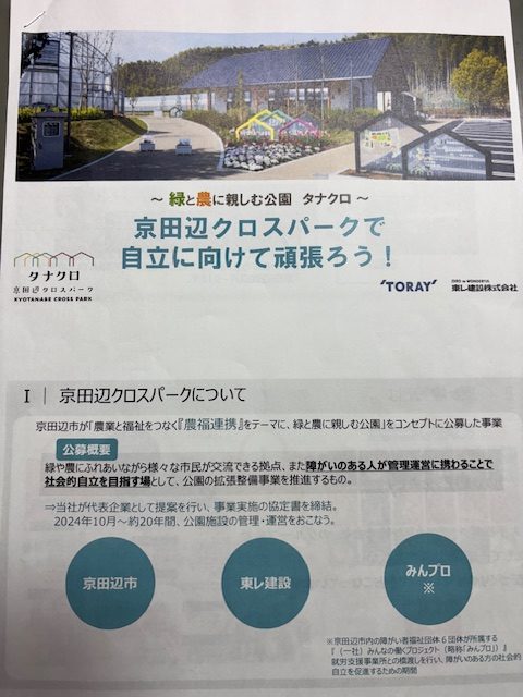 今回の見学先は、京田辺市にある「京田辺クロスパーク(通称:タナクロ)」です。